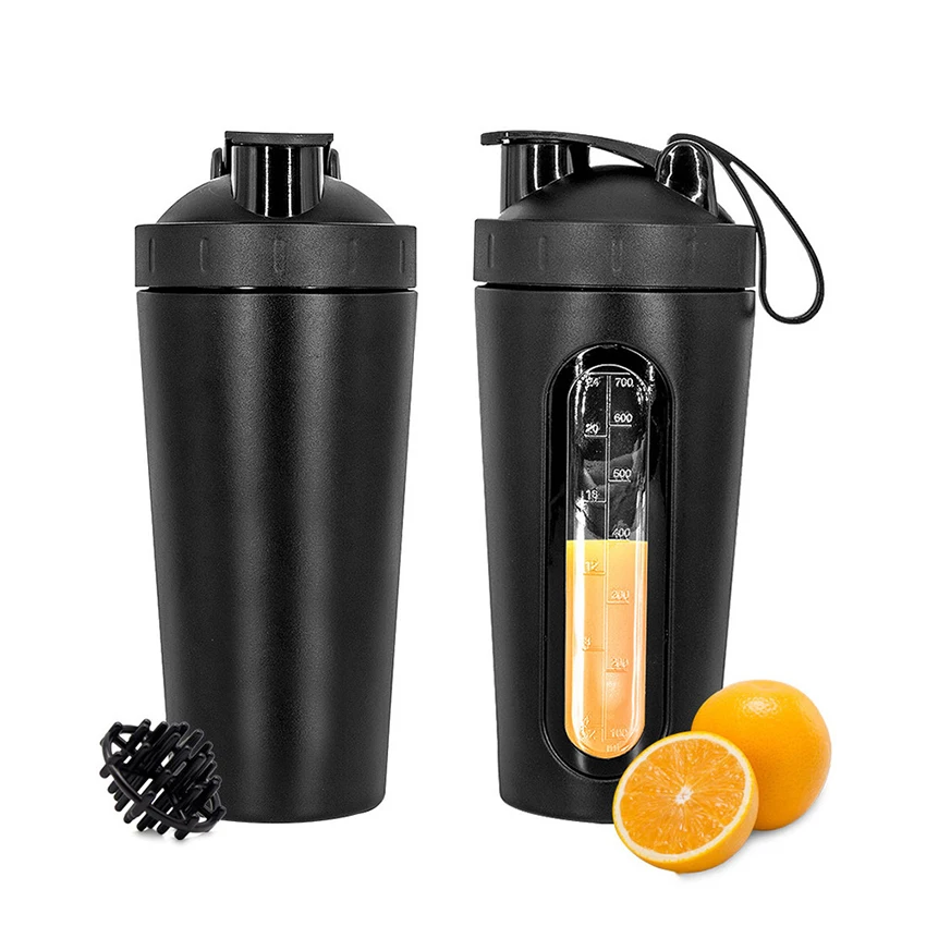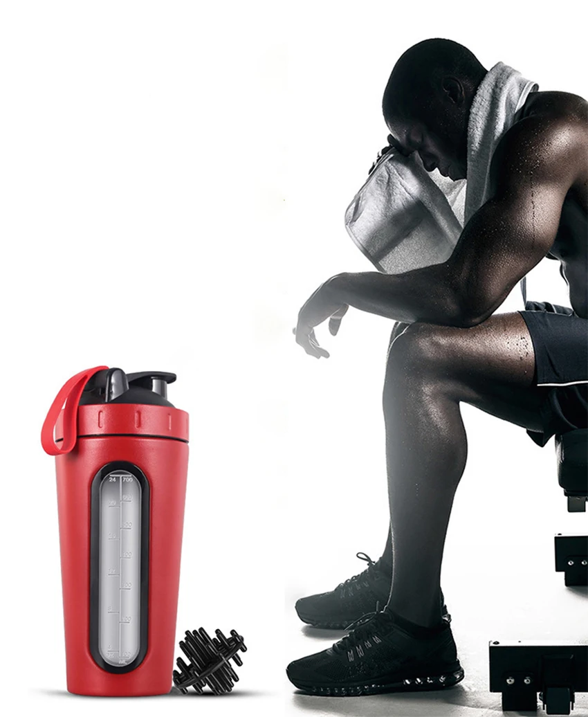 1Pc 700ML Stainless Steel Sports Water Mugs Shaker Bottles With Scale, Outdoor Gym Fitness Shake Cup Protein Powder Mixer Bottle