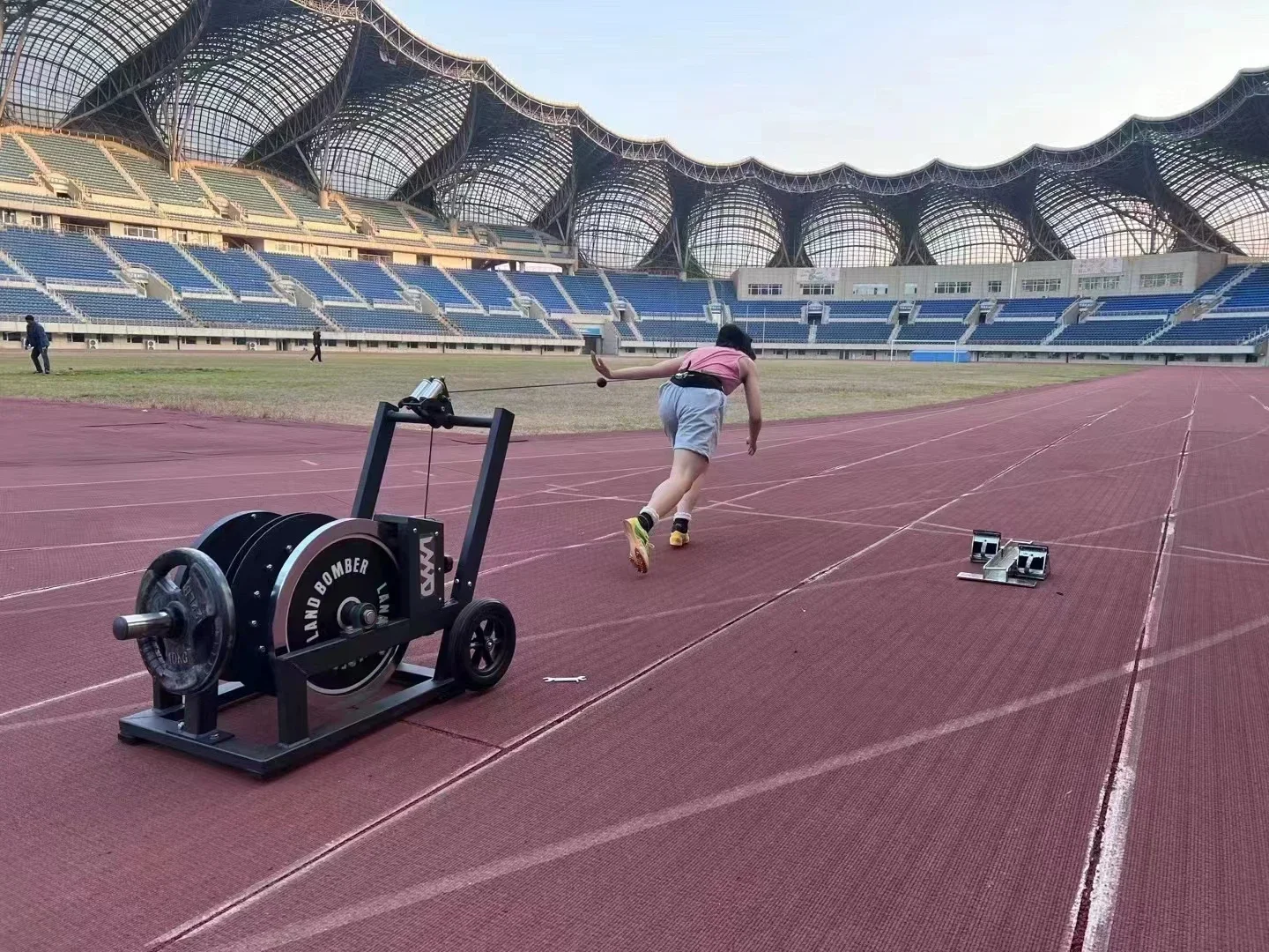 2. The direction and height of rope release are adjustable 3. Easy movement with bottom wheels 4. Display shows : Peak Power/Avg Power/% percentage Peak Power/Reps No./Distance / Time / Resistance level 5. Application: it is suitable for individual training in sports such as track and field, swimming, basketball, soccer, tennis, fencing, etc.